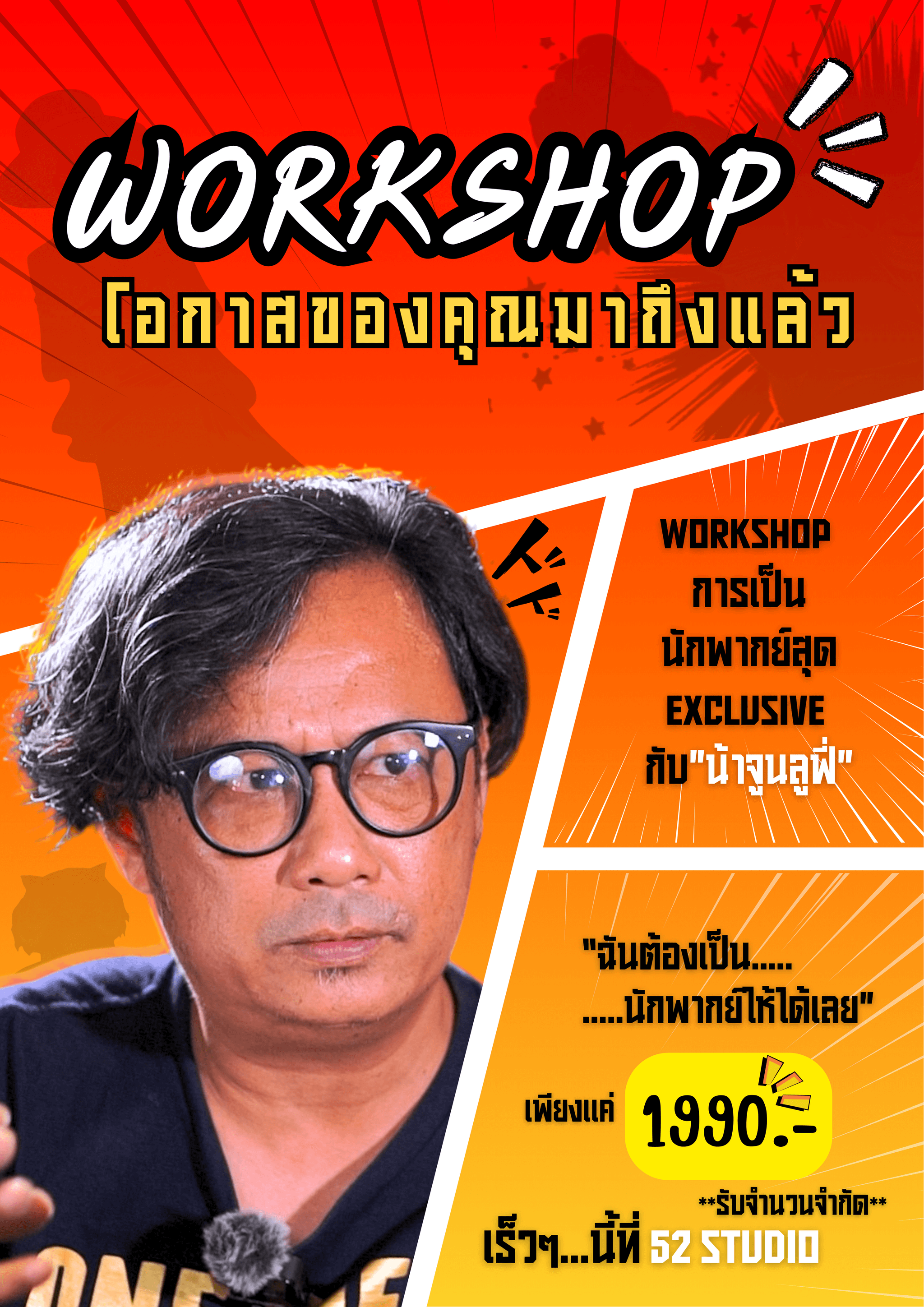 เวิร์คช๊อปที่จะปลุกจิตวิญญาณนักพากย์มืออาชีพในตัวคุณให้ลุกเป็นไฟ 🔥 งานนี้คุณจะได้รับประสบการณ์ที่ถ่ายทอดจากน้าจูนลูฟี่โดยตรง นอกจากนี้คุณจะได้ฝึกการพากย์ในห้องบันทึกเสียงแบบมืออาชีพจริงๆ ที่ 52STUDIO ของเรา ประสบการณ์ที่คุณจะได้รับทั้งหมดนี้ เพียงแค่ 1,990 บาท เท่านั้น